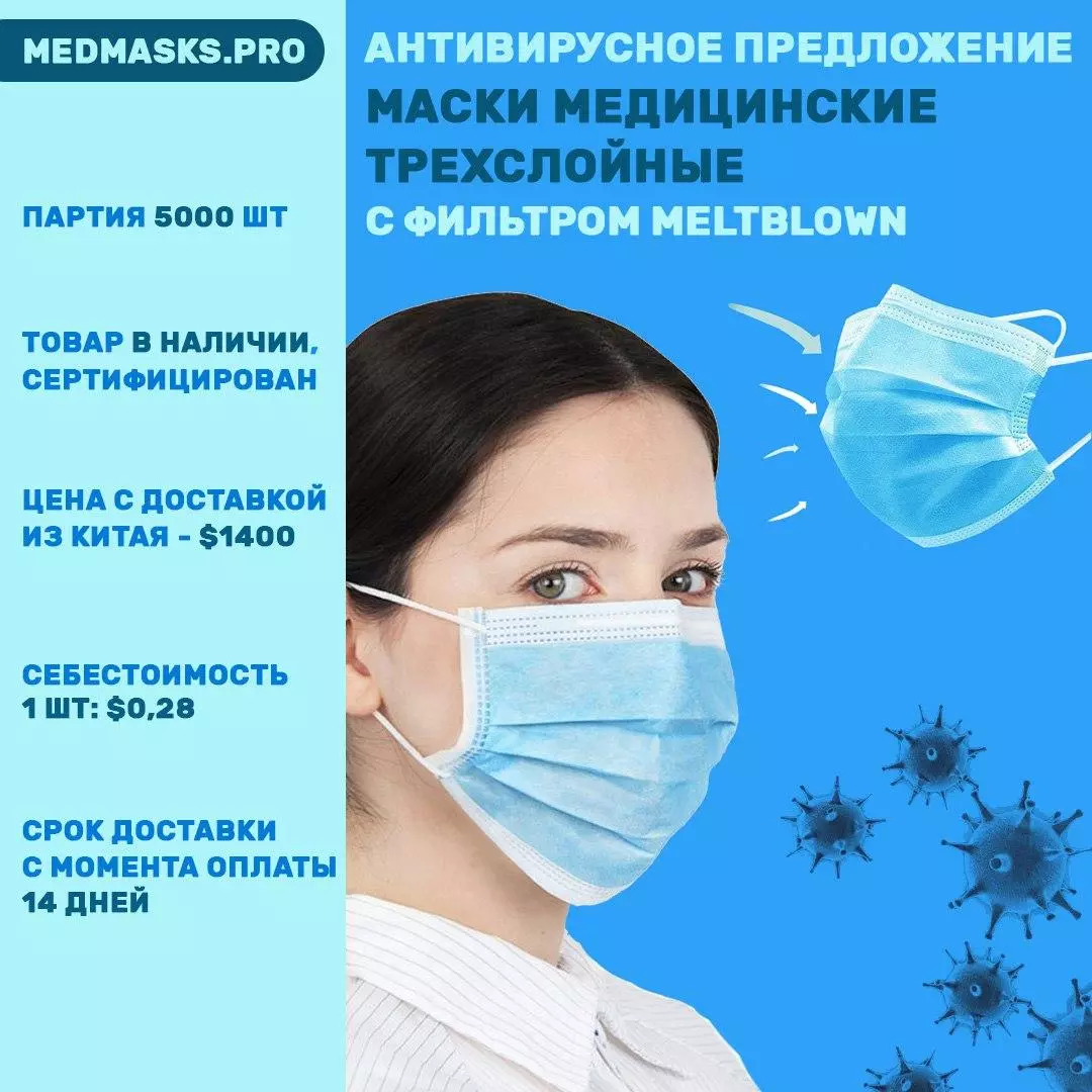 ???? Маски медицинские трехслойные с фильтром meltblown